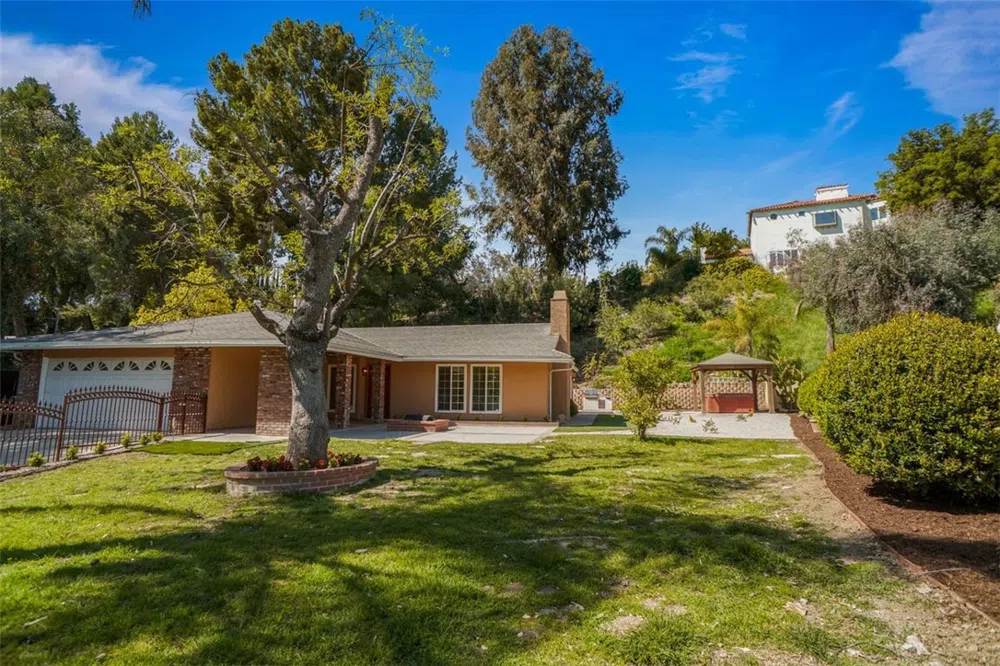 Welcome to this beautifully remodeled home, nestled in a cul-de-sac! This home Features four spacious bedrooms and three bathrooms, with the main suite offering a luxurious jacuzzi tub. The open, airy living room includes a cozy fireplace; the designer kitchen is a true highlight, boasting abundant cabinets, an island with a breakfast bar, a stylish step-down sink, stainless steel appliances, and a newer water filter. The open floor plan provides additional space for entertaining. It leads to the backyard, where you'll find a remodeled entertainer's backyard with a scenic mountain view to enjoy the serene atmosphere, including a custom-built BBQ with a pergola shade perfect for outdoor dining. Enjoy a custom-built gazebo with another relaxing jacuzzi tub. Additional highlights include plantation shutters, ceiling fans, and many upgrades inside and out. If you're seeking tranquility, this is the home for you. Elementary school is within walking distance. It is located just minutes away from Malibu. With the Commons, popular restaurants, and easy access to the 101 freeway, this home offers both convenience and charm.
